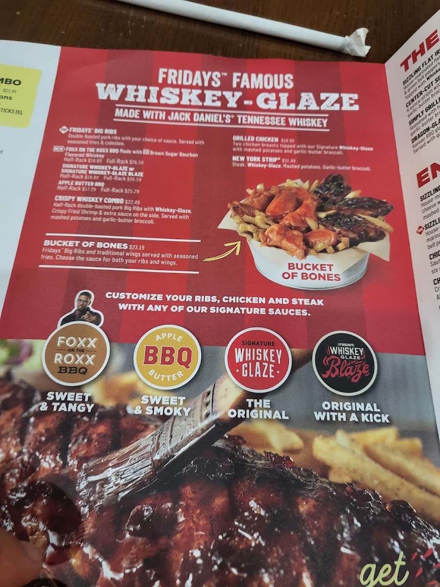 Whiskey-Glazed Ribs, Apple Butter BBQ Ribs and Traditional Wings with your choice of sauce.